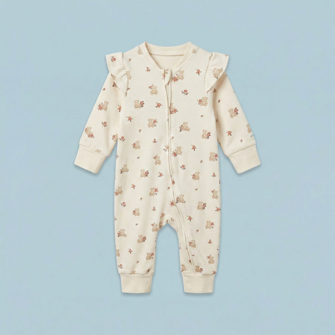 Bear & Blossoms Ruffle Zip-Up Baby Romper