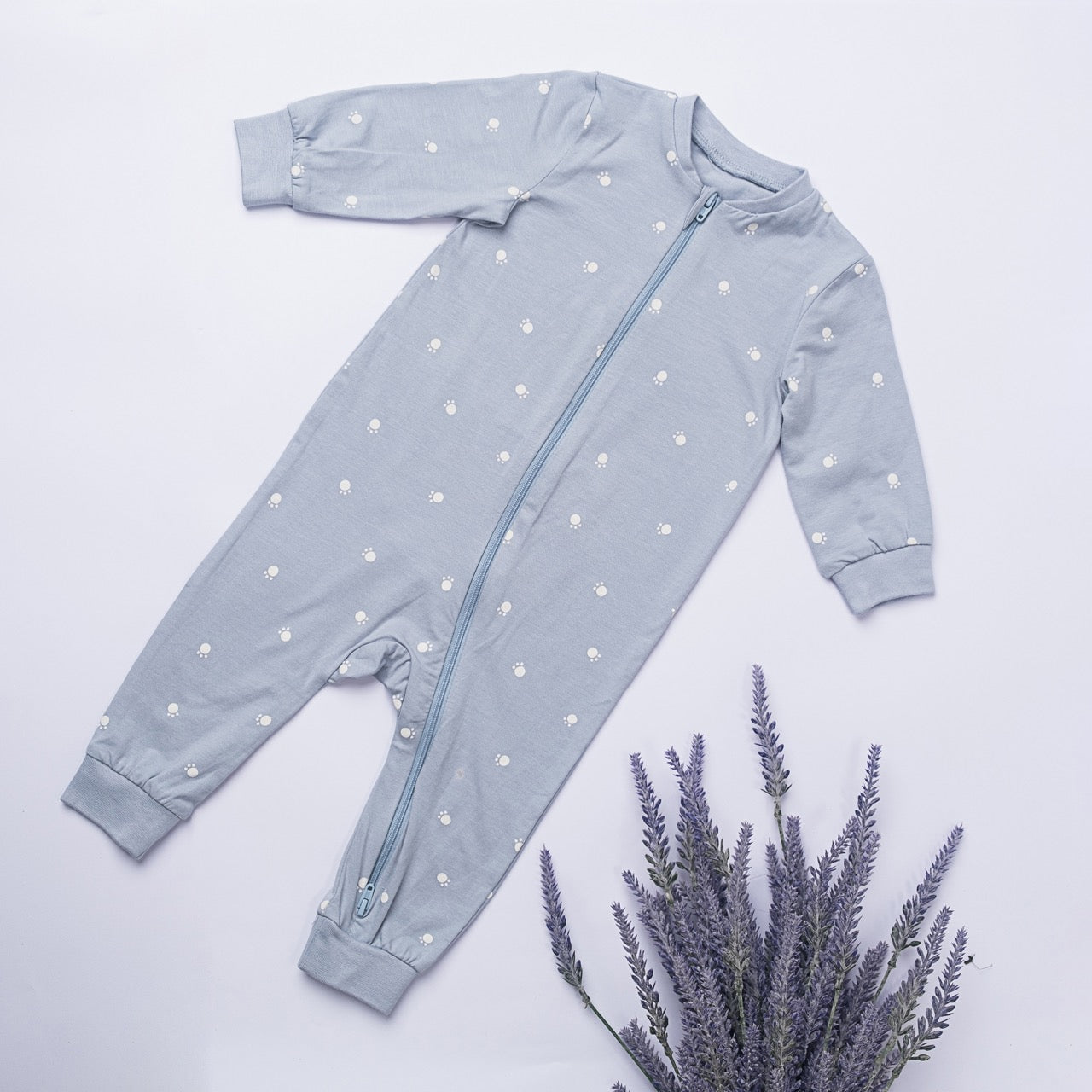 Wrap your little one in ultimate comfort and cuteness with our Cozy Bear Baby Romper. Designed in a soothing sky blue hue, this long-sleeve romper features an all-over mini bear paw print and an adorable bear face applique on the back. Crafted from soft, breathable cotton, it ensures all-day comfort whether your baby is napping or playing.