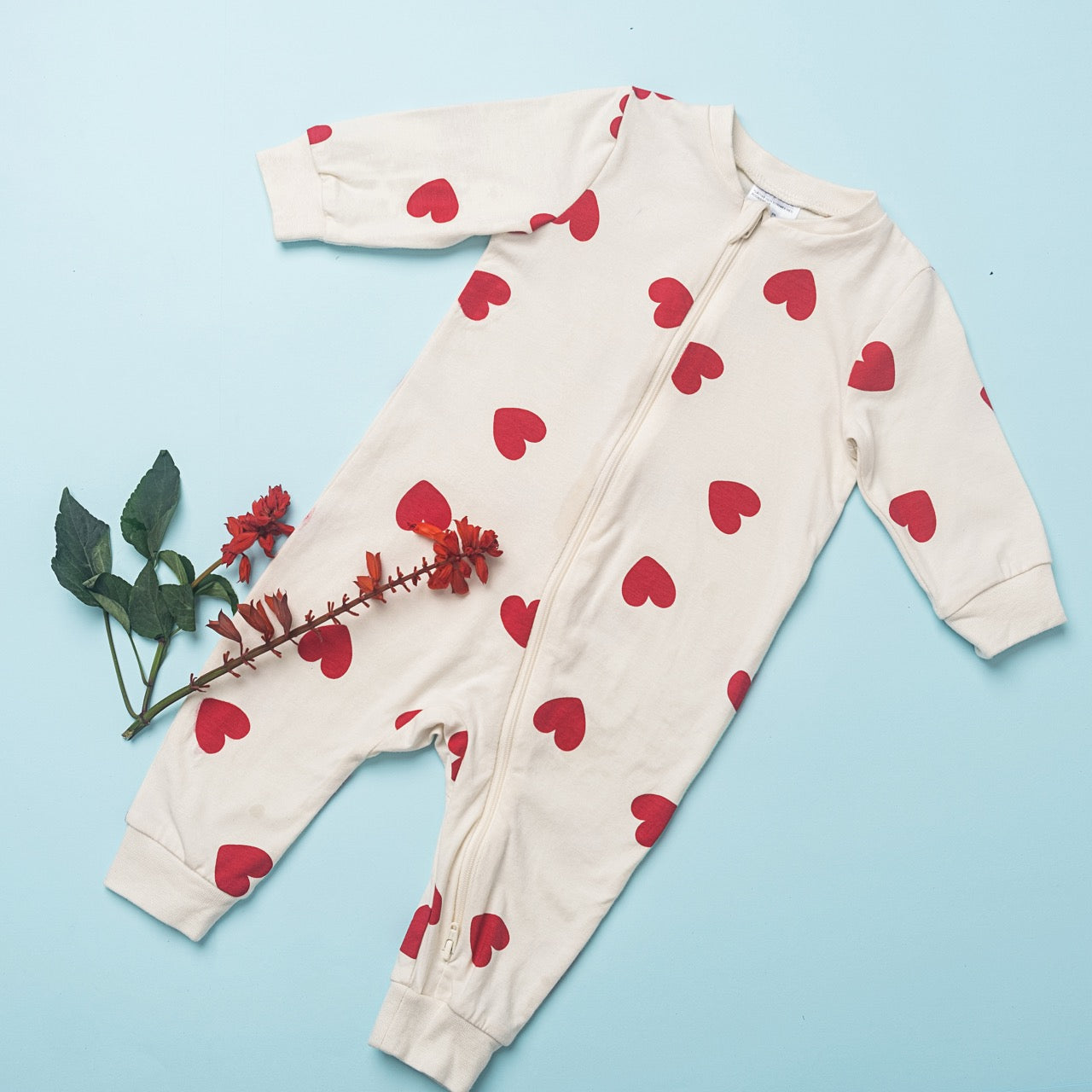 Wrap your little bundle of joy in love with this charming heart-print romper from Happy Year. Made with soft, breathable cotton, this cream-colored full-sleeve romper is adorned with bold red hearts, perfect for expressing the warmth and affection your baby brings to your life.